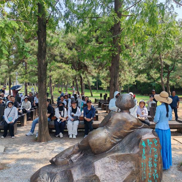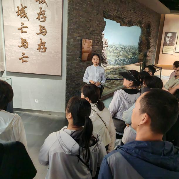 踏入臺兒莊大戰(zhàn)紀念館,時光仿佛倒流至1938年的春天。在紀念館內(nèi),全體人員認真聆聽講解員的深情講述,全面了解了1938年臺兒莊大戰(zhàn)背景以及戰(zhàn)爭的全過程,大家凝視著展廳內(nèi)的歷史照片、逼真的雕塑,仿佛穿越回那個戰(zhàn)火紛飛的年代,真切地感受到和平的來之不易。