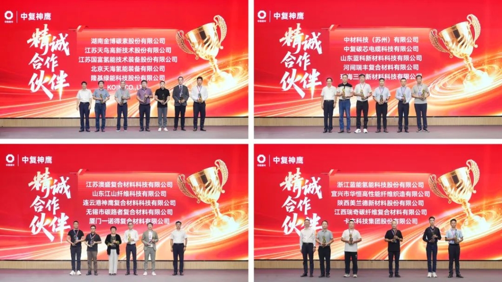活動現(xiàn)場,中復(fù)神鷹特設(shè)“精誠合作伙伴”獎,為長期以來給予中復(fù)神鷹鼎力支持、深度協(xié)同,并為產(chǎn)業(yè)發(fā)展做出卓越貢獻(xiàn)的合作伙伴頒獎。沉甸甸的獎杯是產(chǎn)業(yè)鏈上下游緊密合作的見證,也蘊含著未來同心同行、共創(chuàng)輝煌的堅定承諾和美好期盼。