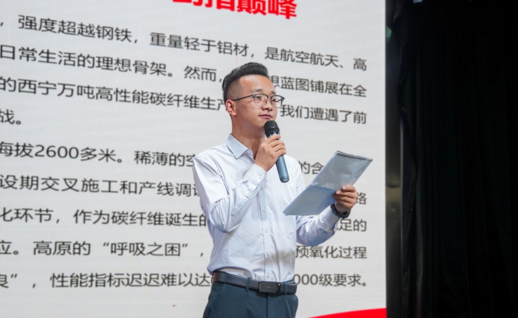 “5年前,我是項(xiàng)目現(xiàn)場(chǎng)的一名女技術(shù)員;今天,我們建成了全球海拔最高的碳纖維生產(chǎn)基地?!笔字v人柴娟的開(kāi)場(chǎng)白,將聽(tīng)眾帶回西寧基地建設(shè)現(xiàn)場(chǎng)。她帶領(lǐng)團(tuán)隊(duì)攻克聚合車間建設(shè)難題,實(shí)現(xiàn)一次性試車成功,保障了全球最大單體碳纖維基地的穩(wěn)定運(yùn)行。這位曾被稱為“學(xué)生女工長(zhǎng)”的85后,用五年堅(jiān)守踐行著“材料創(chuàng)造美好世界”的使命。